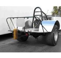 The only original pieces in the car today are the steering box, aluminum aircraft seat, front axle (which had to be replaced in 2007) and the fiberglass body. Everything else was duplicated from original pieces. Two major changes were made. One was the installation of a 2 speed power glide transmission and the other was the use of alcohol for fuel. Both these would allow me to move the car in and out of shows and trailer with out a great heat problem. The old original transmission was a 39 LaSalle box with only high gear, which meant push starts and no reverse. We retained the old wood push bar and parachute for esthetics.